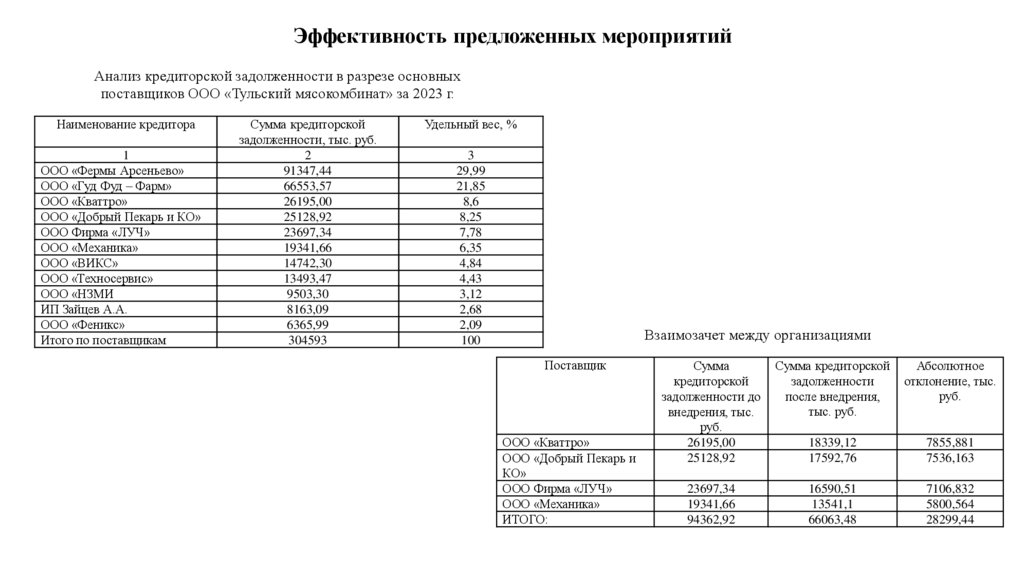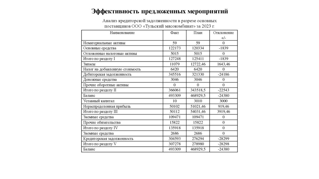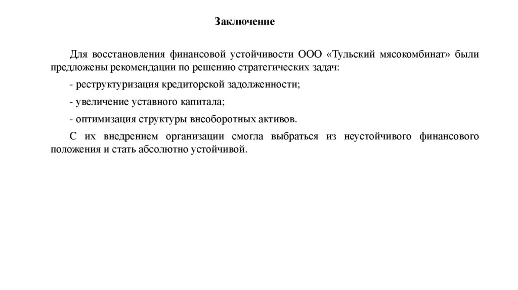 ЗаключениеДля восстановления финансовой устойчивости ООО «Тульский мясокомбинат» были