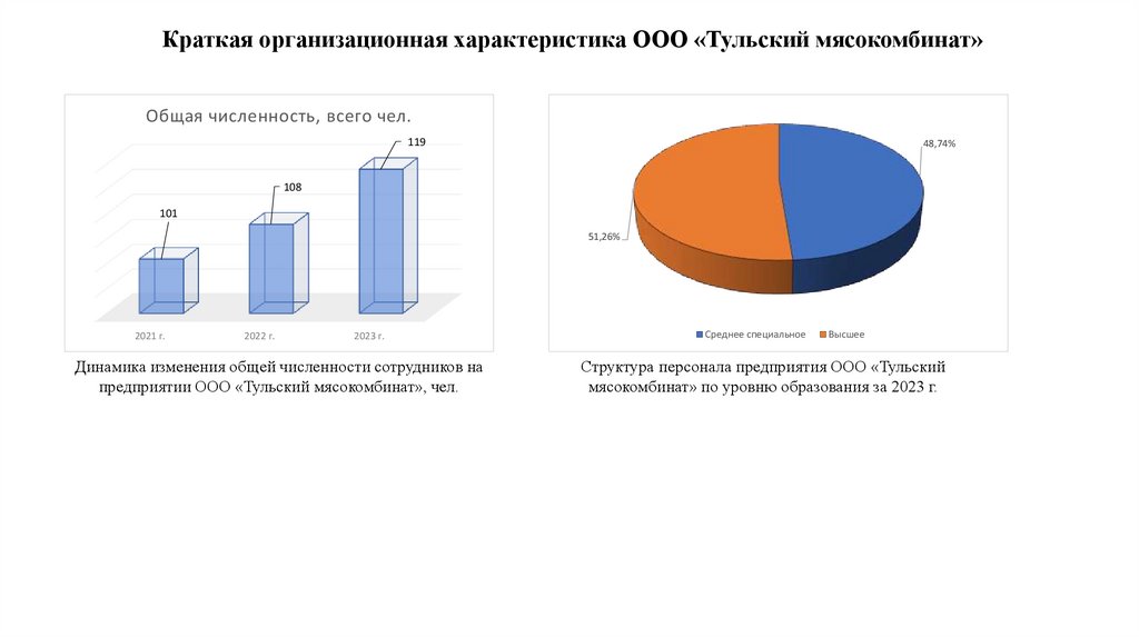 Краткая организационная характеристика ООО «Тульский мясокомбинат»Общая численность, всего чел.