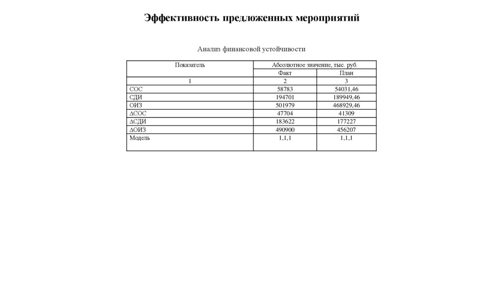 Эффективность предложенных мероприятийАнализ финансовой устойчивости