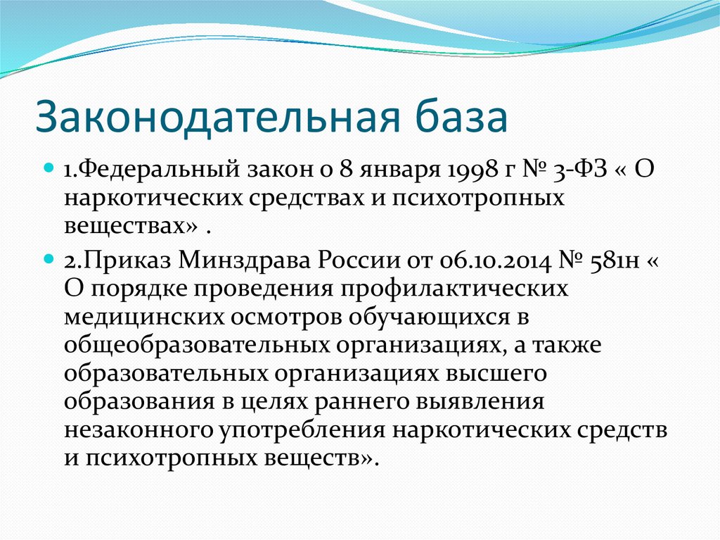 Законодательная база1.Федеральный закон о 8 января 1998 г № 3-ФЗ « О