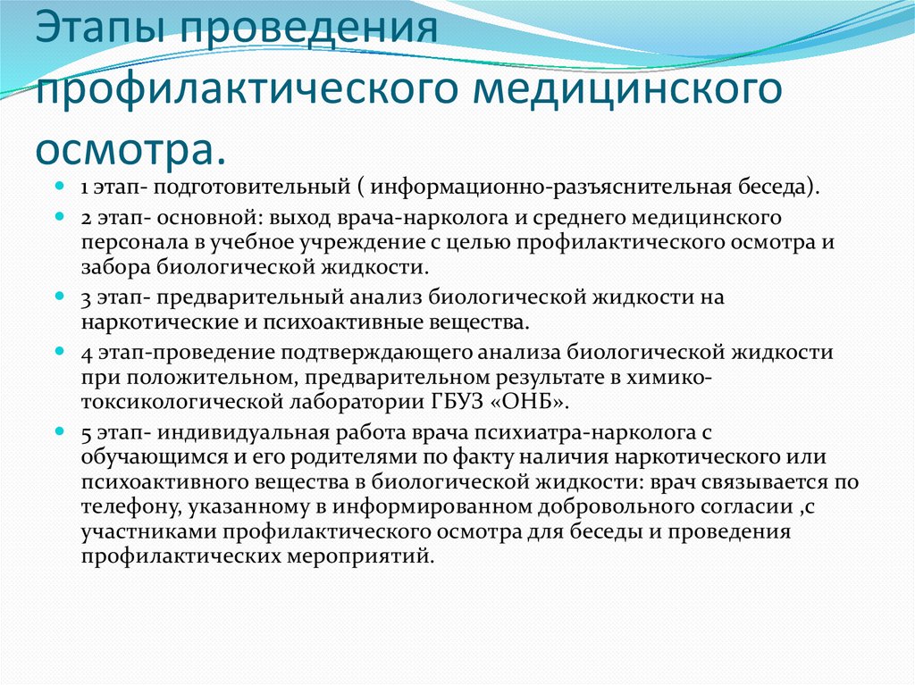 Этапы проведенияпрофилактического медицинского