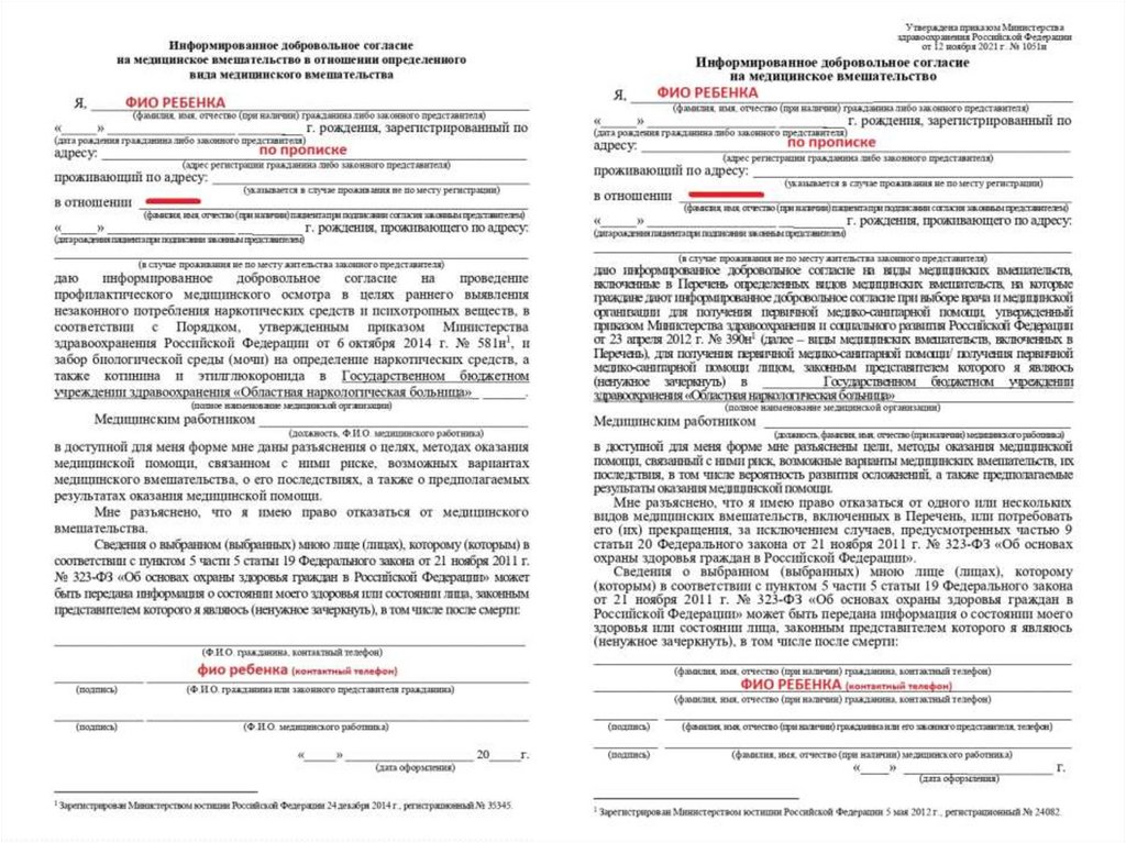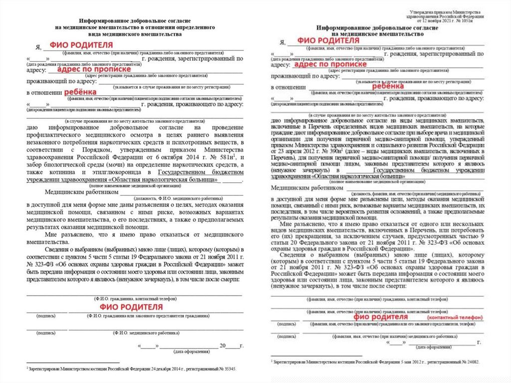 Информированное добровольное согласие намедицинское вмешательство в отношении
