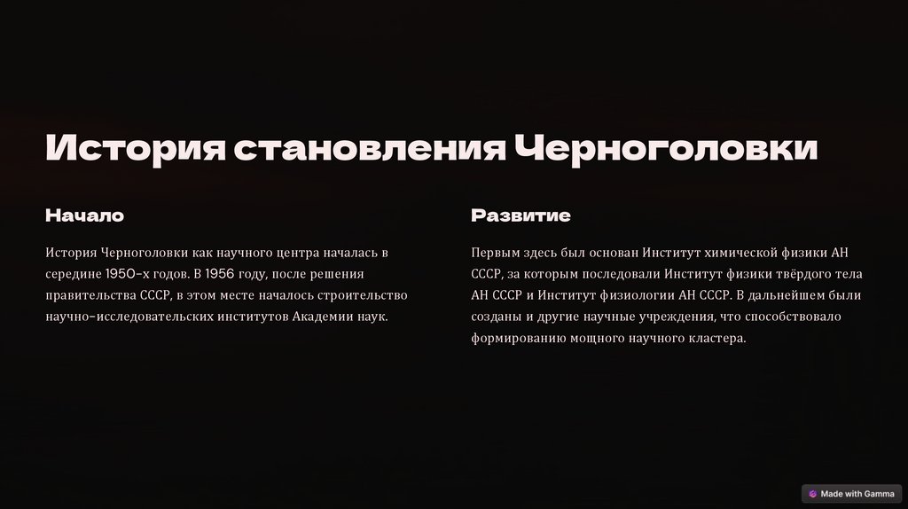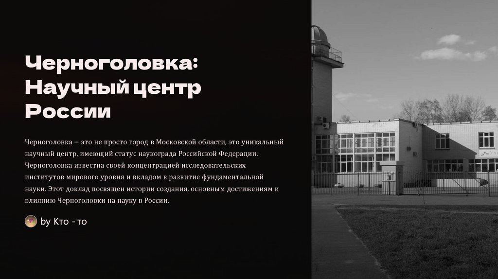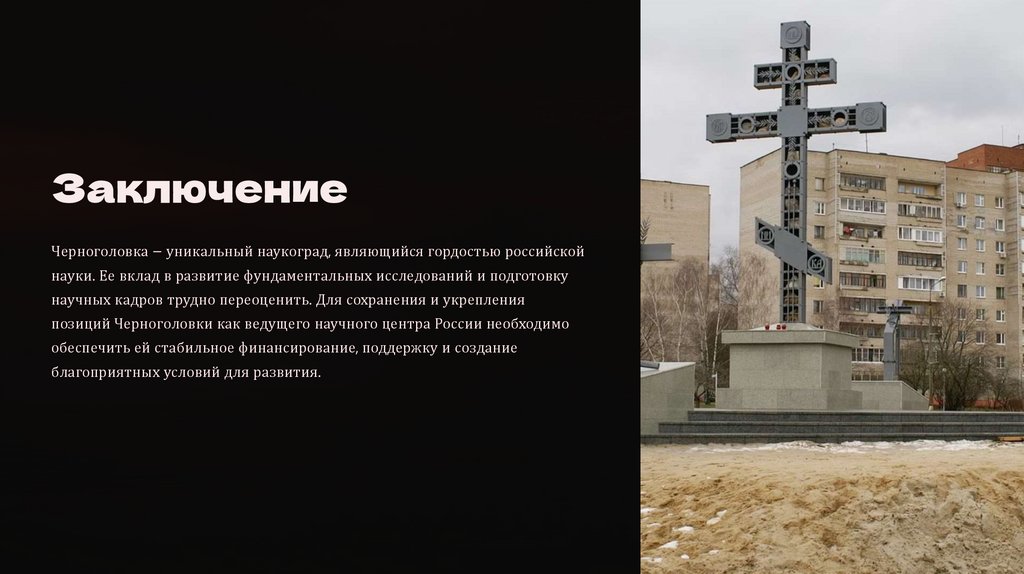 ЗаключениеЧерноголовка – уникальный наукоград, являющийся гордостью российской