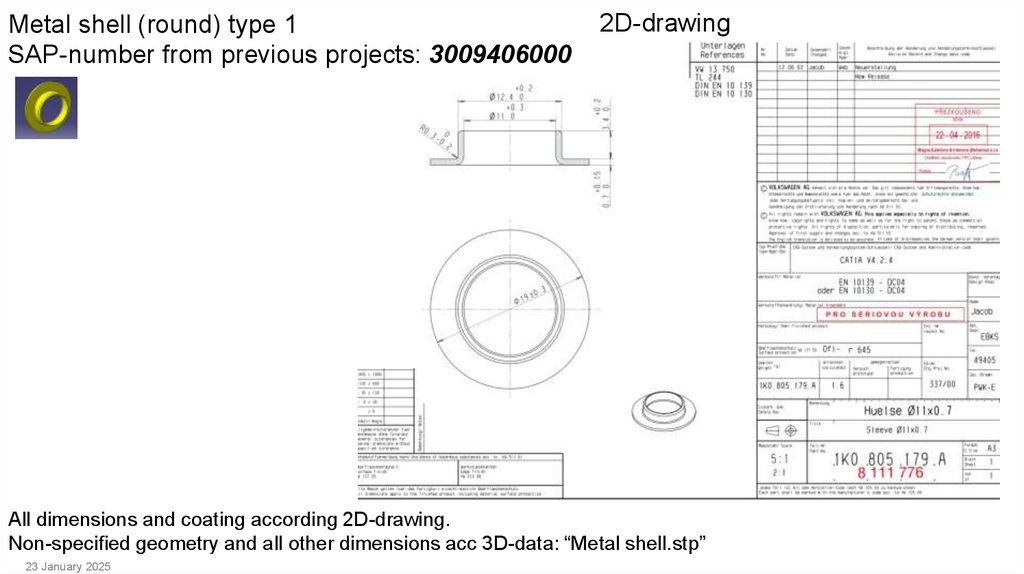 Metal shell (round) type 1SAP-number from previous projects: 3009406000