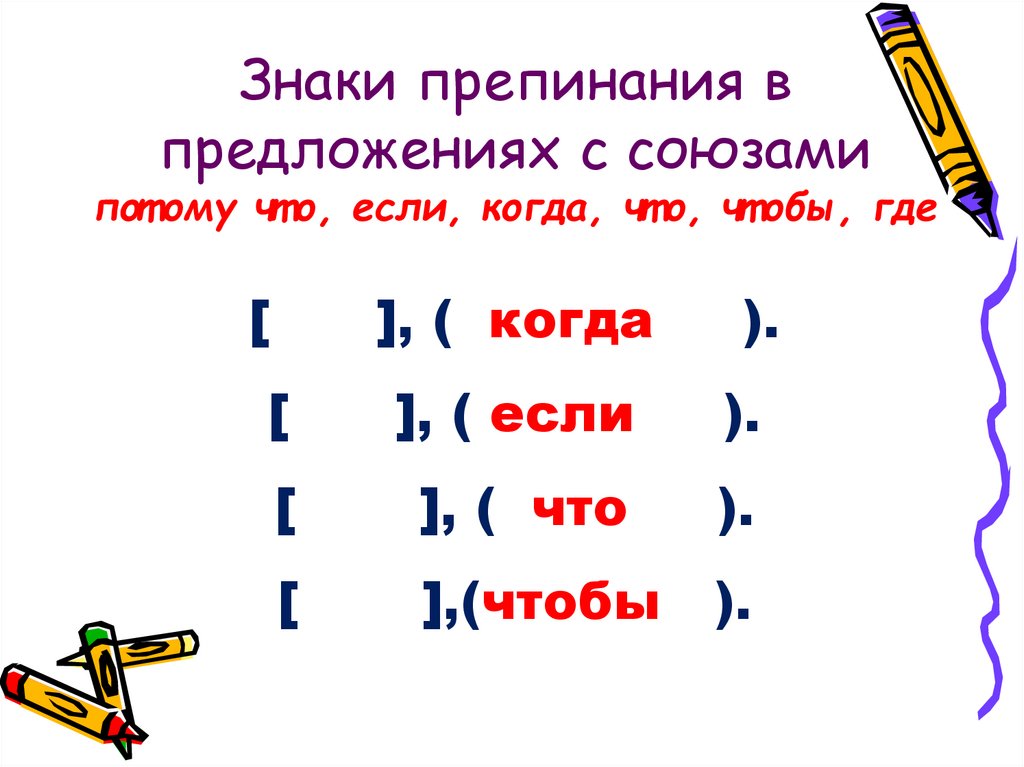 13. Знаки препинания в предложениях с союзами потому что, если, когда, что, чтобы, где