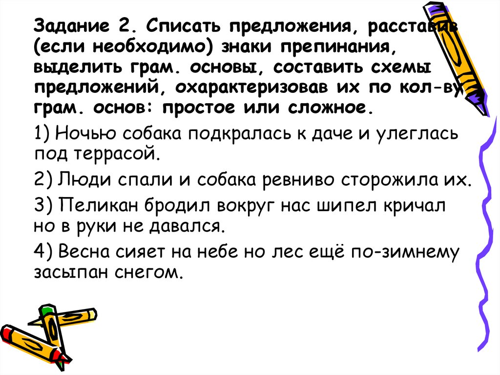 Простое предложение – это предложение,в котором одна грамматическая основа.