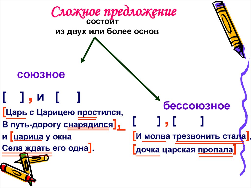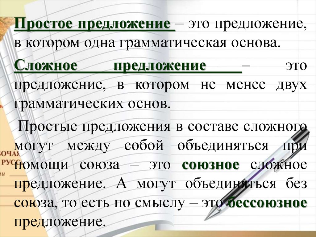 Предложения простые и сложные. Сложные предложения с бессоюзной и союзной связью