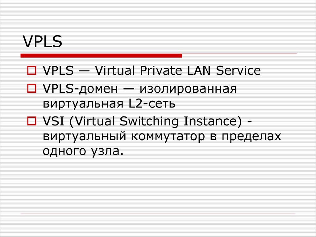 VPLS — Virtual Private LAN ServiceVPLS-домен — изолированная