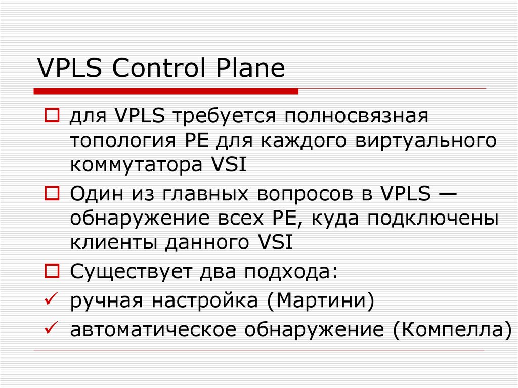 для VPLS требуется полносвязнаятопология PE для каждого виртуального