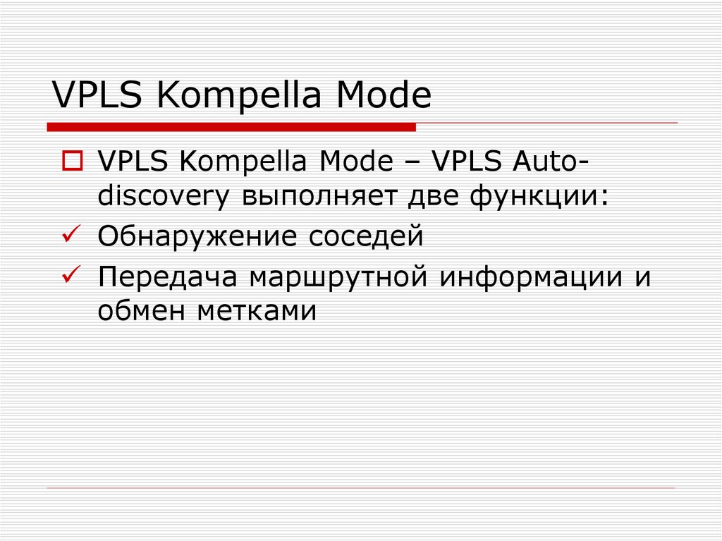 VPLS Kompella Mode – VPLS Autodiscovery выполняет две функции:Обнаружение соседей