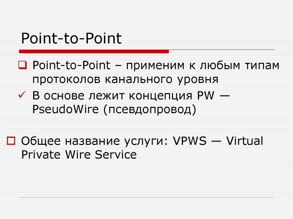 Point-to-Point – применим к любым типампротоколов канального уровня