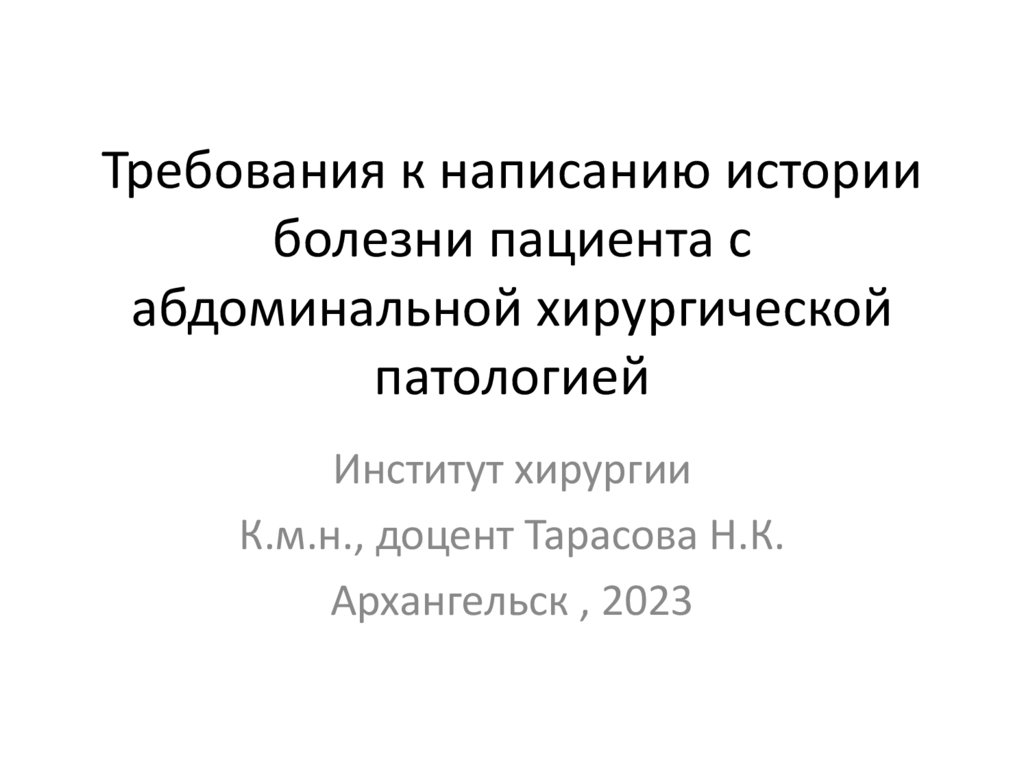 Требования к написанию истории болезни пациента с абдоминальной хирургической патологией