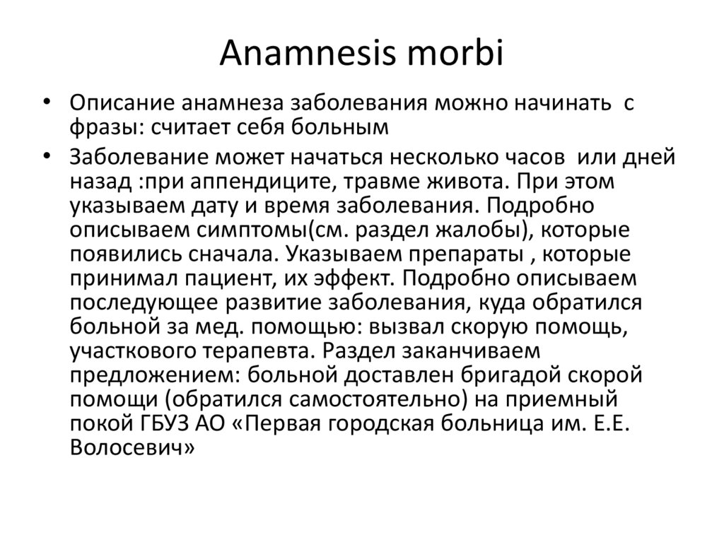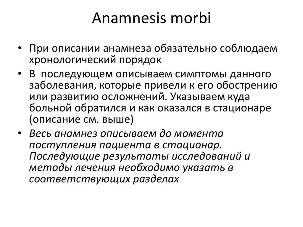 Anamnesis morbi• Описание анамнеза заболевания можно начинать с