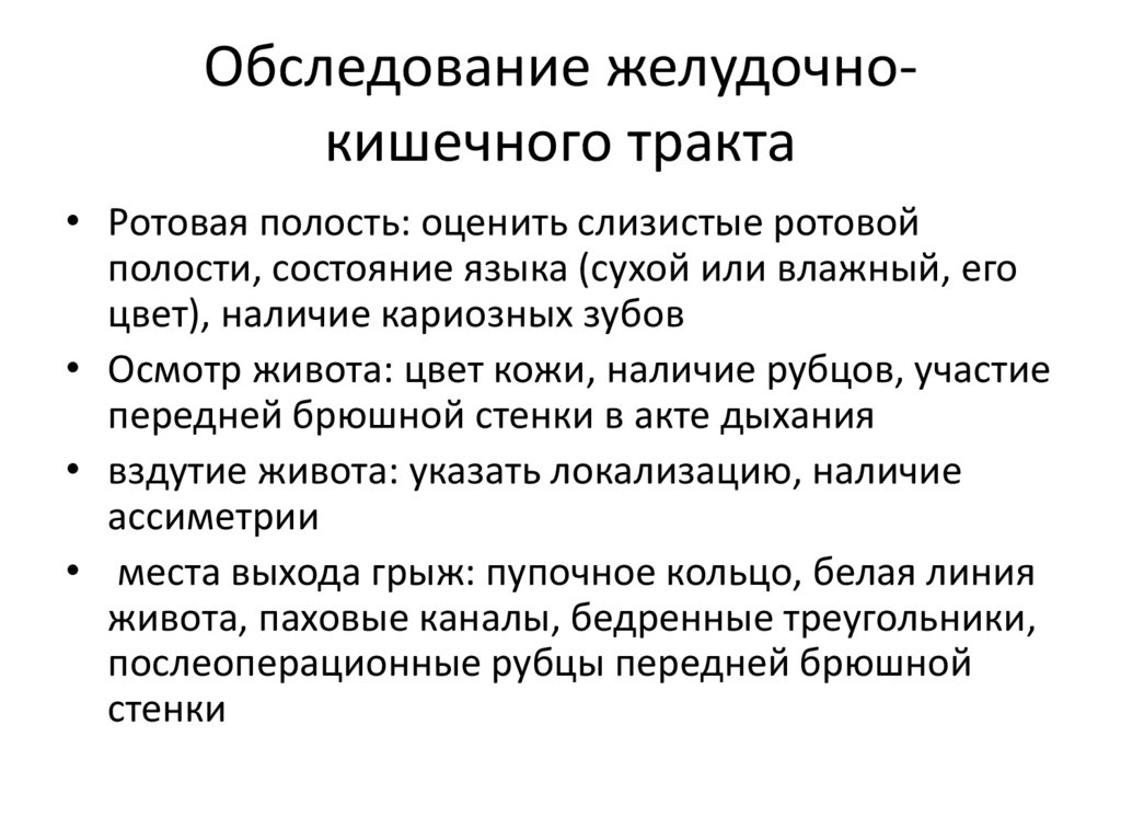 оценка состояния языка, осмотр, пальпация живота, наличие