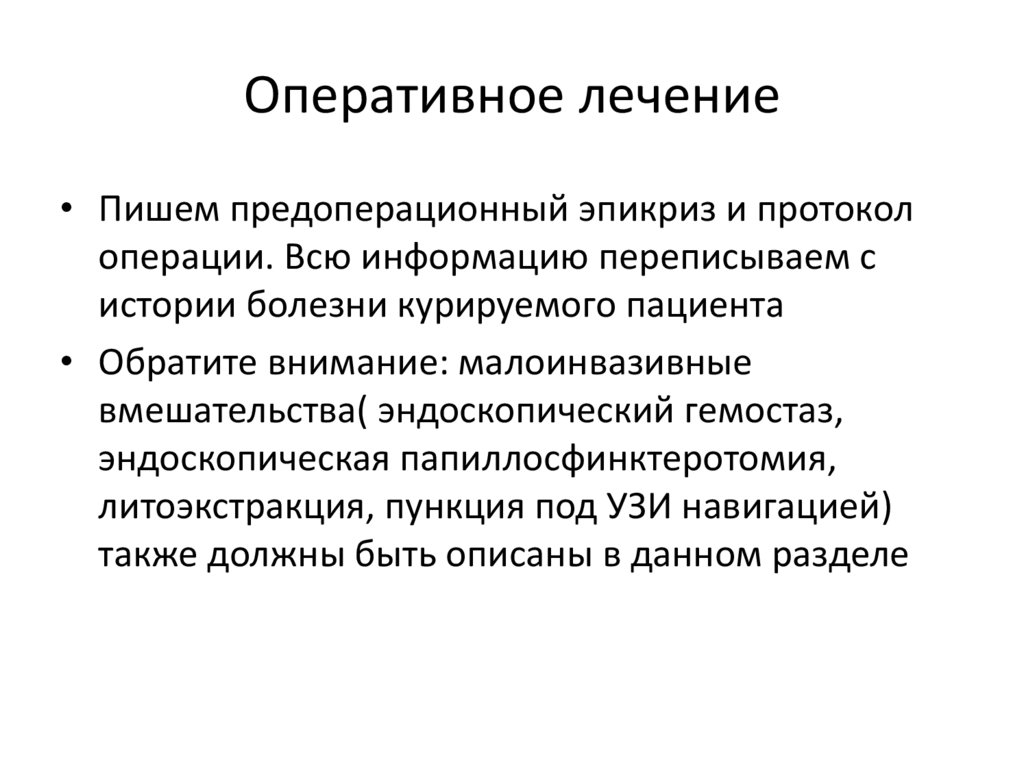 Оперативное лечение• Пишем предоперационный эпикриз и протокол
