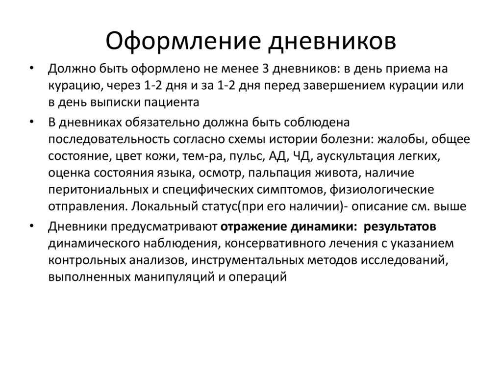 Оформление дневников• Должно быть оформлено не менее 3 дневников: в день приема на