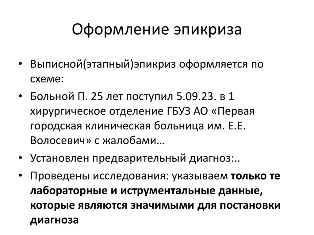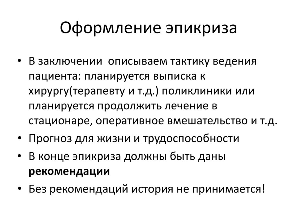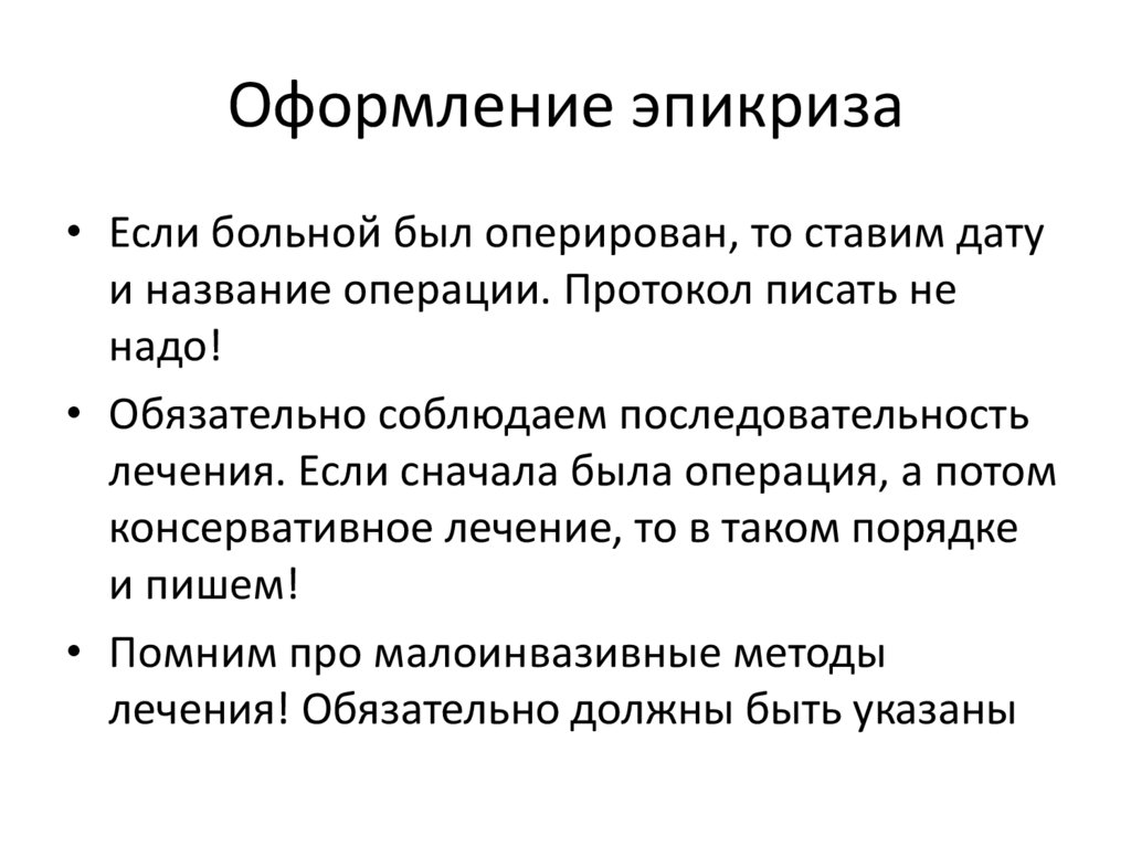 Оформление эпикриза• Если больной был оперирован, то ставим дату