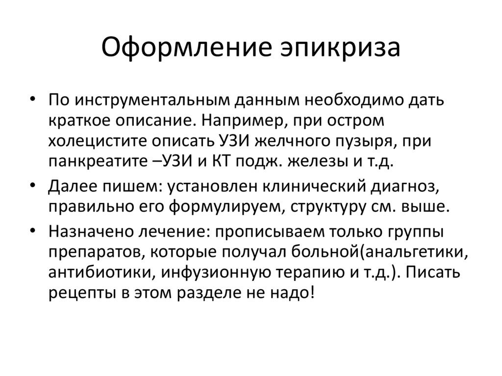 Оформление эпикриза• По инструментальным данным необходимо дать