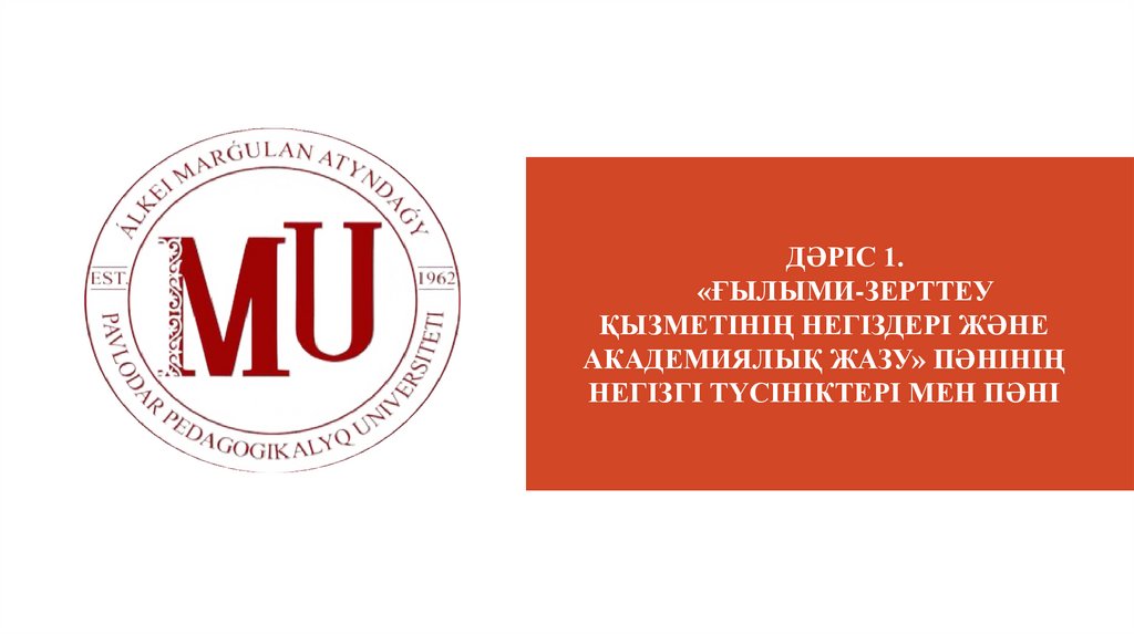 ДӘРІС 1.«ҒЫЛЫМИ-ЗЕРТТЕУ