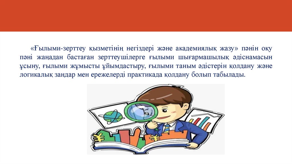 «Ғылыми-зерттеу қызметінің негіздері және академиялық жазу» пәнін оқупәні жаңадан бастаған зерттеушілерге ғылыми шығармашылық әдіснамасын