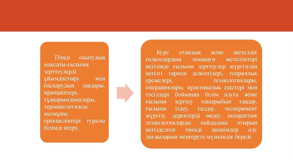 ПӘННІҢ МІНДЕТТЕРІ- ғылымның, ғылыми бағыттар мен ғылыми нәтижелердің прогрессивті мәнін, оның қоғамның
