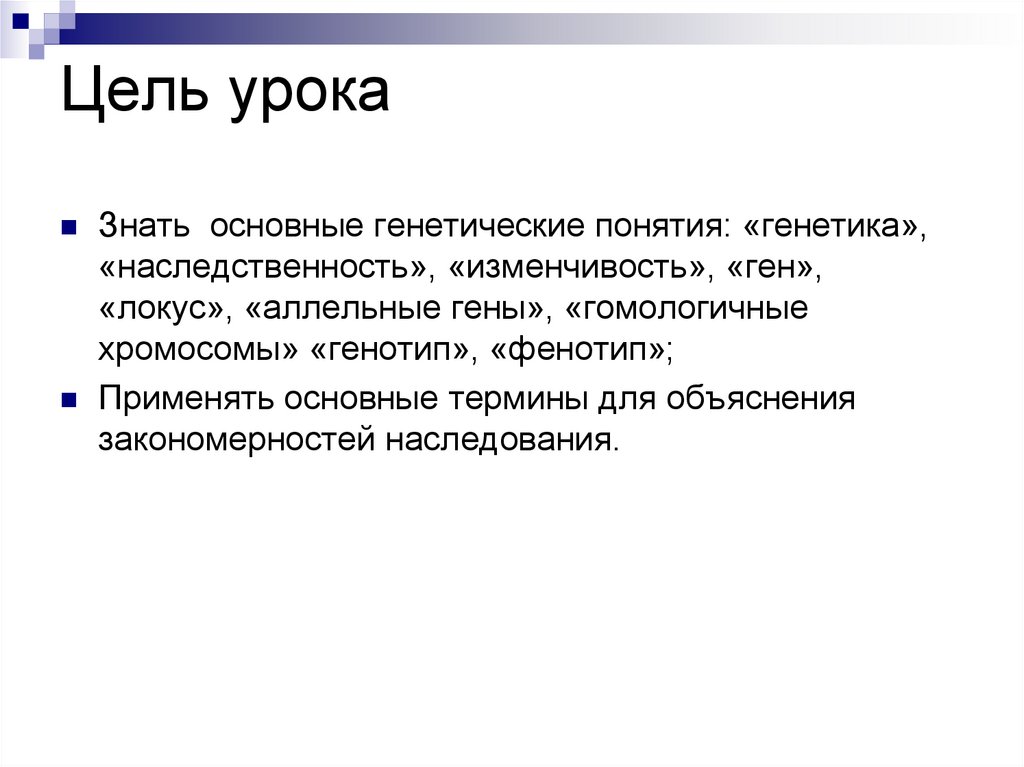 Знать основные генетические понятия: «генетика»,«наследственность», «изменчивость», «ген»,