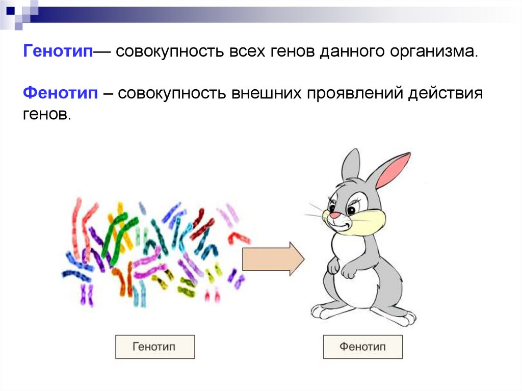 15. Генотип— совокупность всех генов данного организма. Фенотип – совокупность внешних проявлений действия генов.