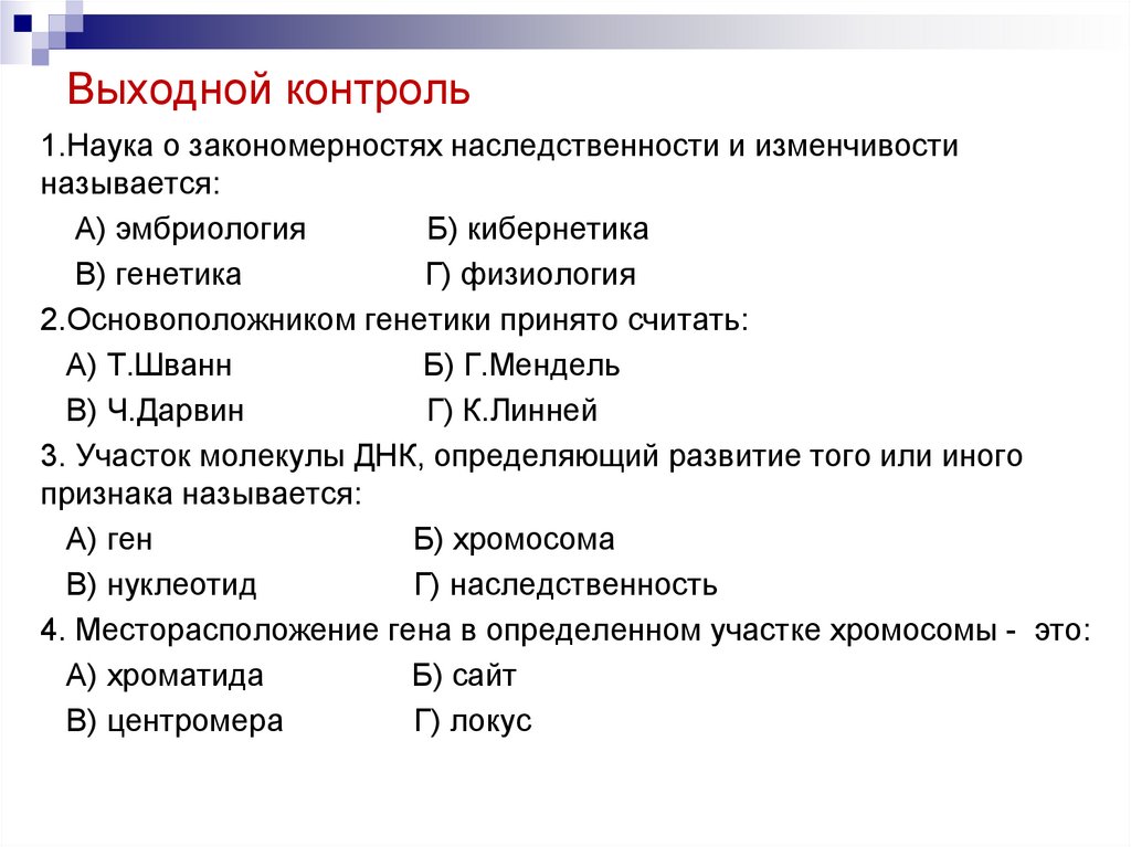 1.Наука о закономерностях наследственности и изменчивостиназывается: