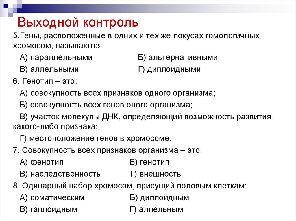 5.Гены, расположенные в одних и тех же локусах гомологичныххромосом, называются: