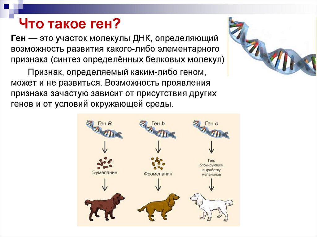 Ген — это участок молекулы ДНК, определяющийвозможность развития какого-либо элементарного