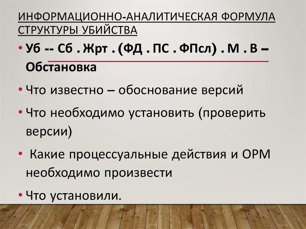 ИНФОРМАЦИОННО-АНАЛИТИЧЕСКАЯ ФОРМУЛАСТРУКТУРЫ УБИЙСТВА