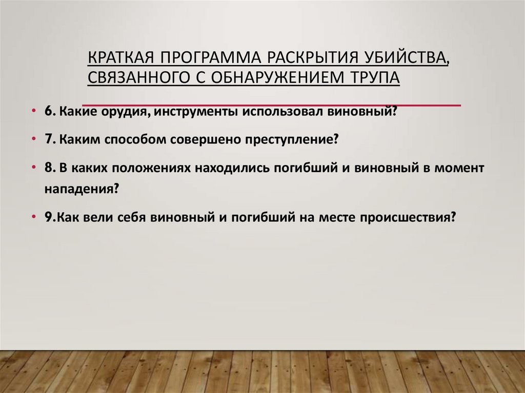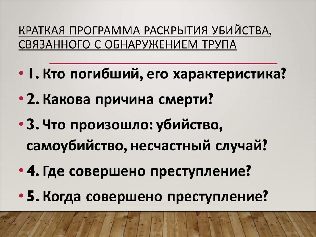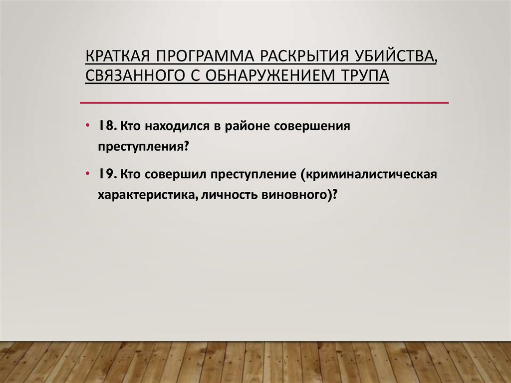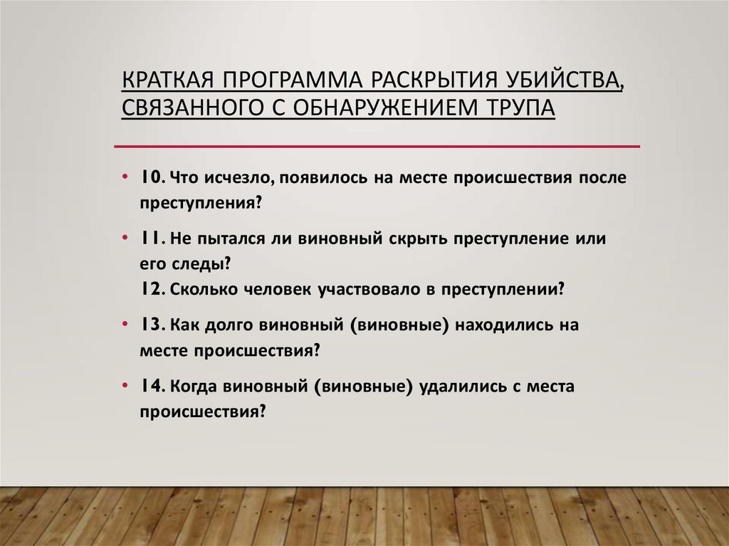 13. Краткая программа раскрытия убийства, связанного с обнаружением трупа