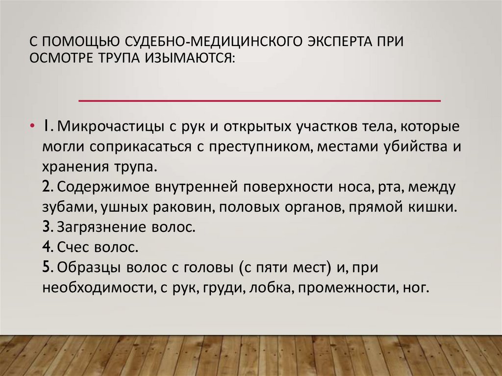 С ПОМОЩЬЮ СУДЕБНО-МЕДИЦИНСКОГО ЭКСПЕРТА ПРИОСМОТРЕ ТРУПА ИЗЫМАЮТСЯ:
