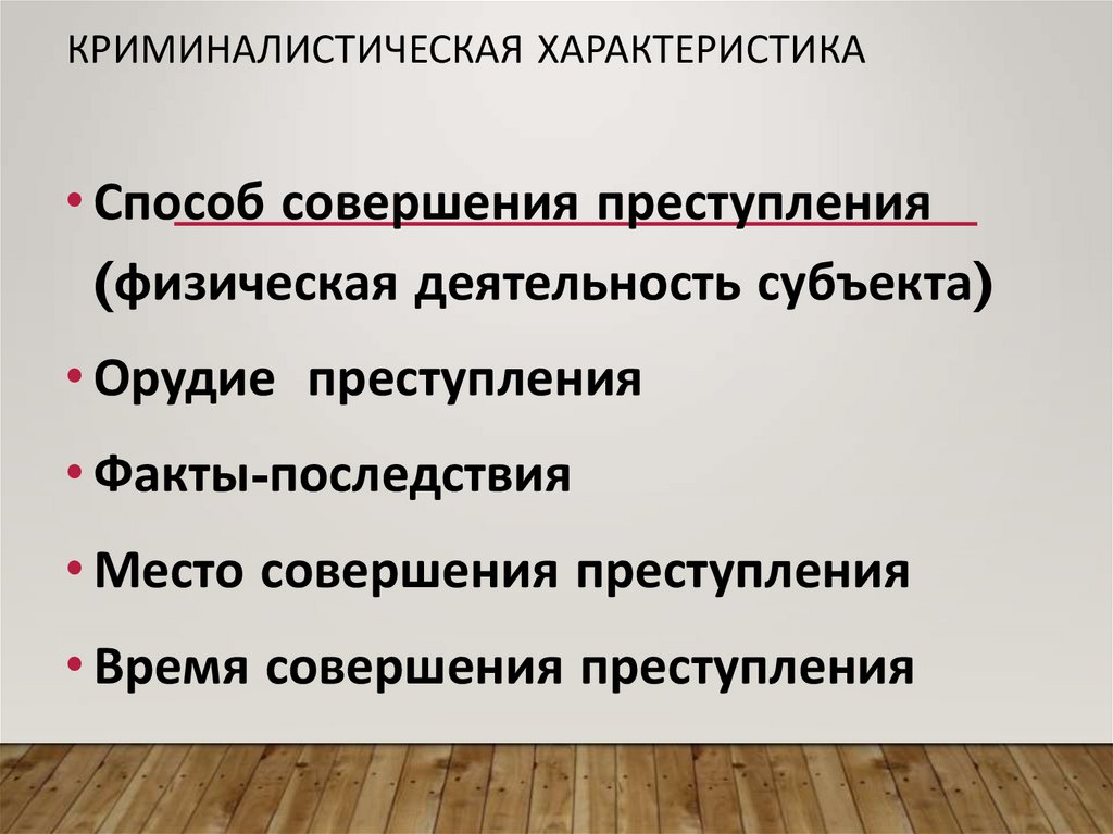 КРИМИНАЛИСТИЧЕСКАЯ ХАРАКТЕРИСТИКА• Способ совершения преступления