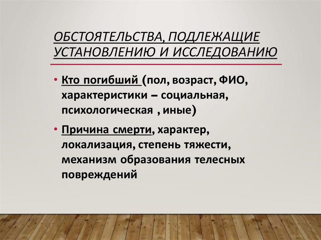 ОБСТОЯТЕЛЬСТВА, ПОДЛЕЖАЩИЕУСТАНОВЛЕНИЮ И ИССЛЕДОВАНИЮ