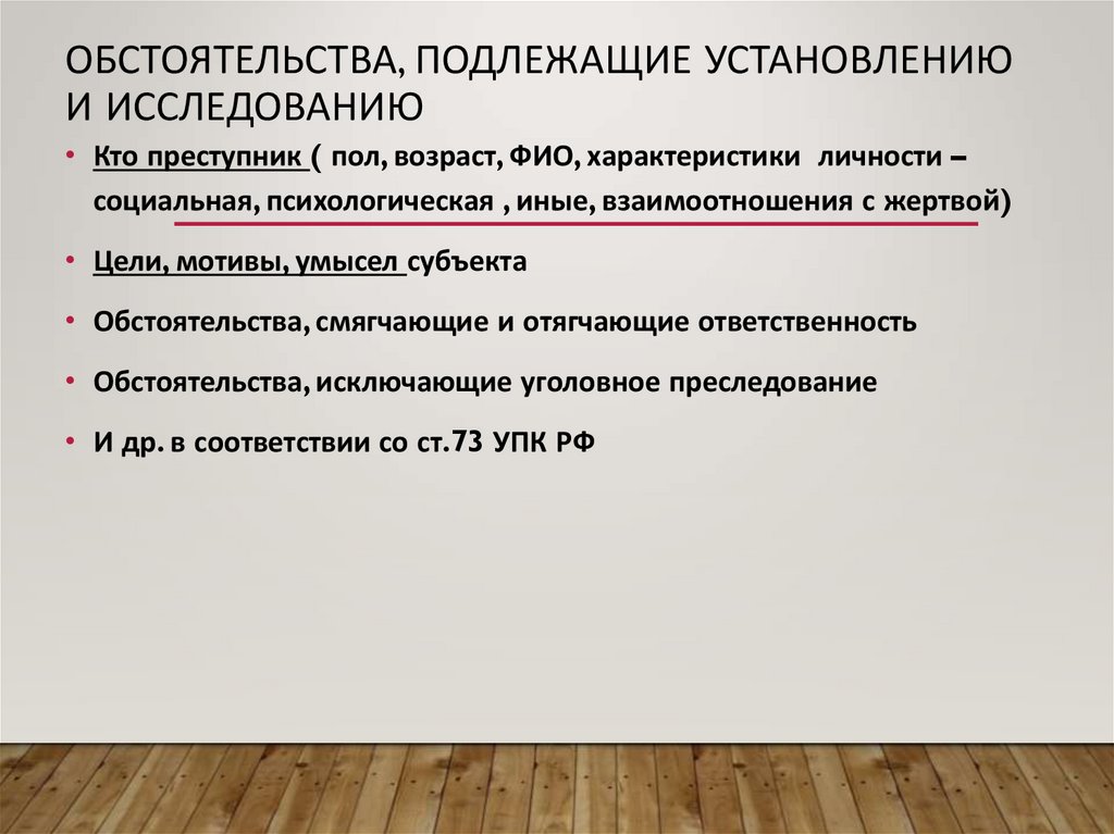 ОБСТОЯТЕЛЬСТВА, ПОДЛЕЖАЩИЕ УСТАНОВЛЕНИЮ ИИССЛЕДОВАНИЮ
