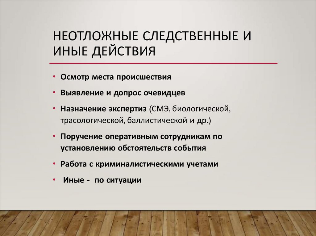НЕОТЛОЖНЫЕ СЛЕДСТВЕННЫЕ ИИНЫЕ ДЕЙСТВИЯ