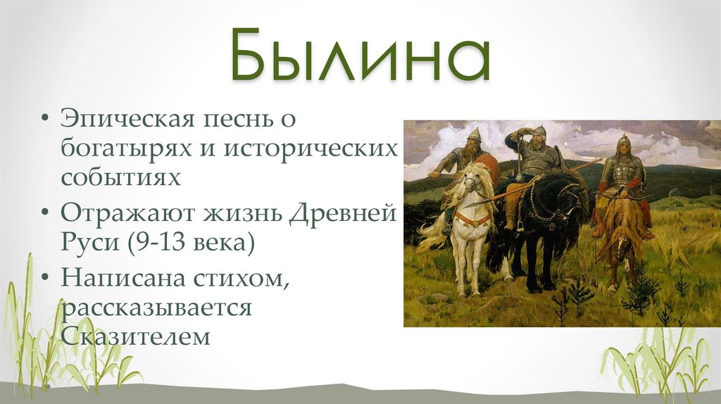 Былина• Эпическая песнь о