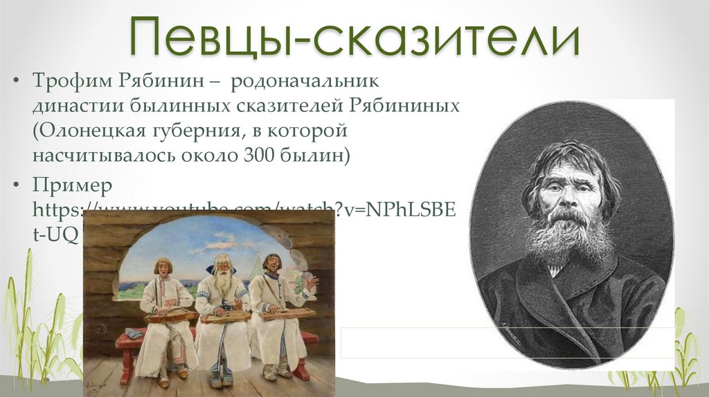 Певцы-сказители• Трофим Рябинин – родоначальник