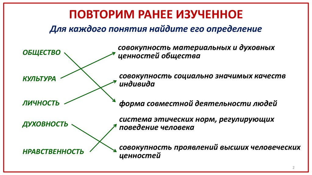ПОВТОРИМ РАНЕЕ ИЗУЧЕННОЕДля каждого понятия найдите его определение
