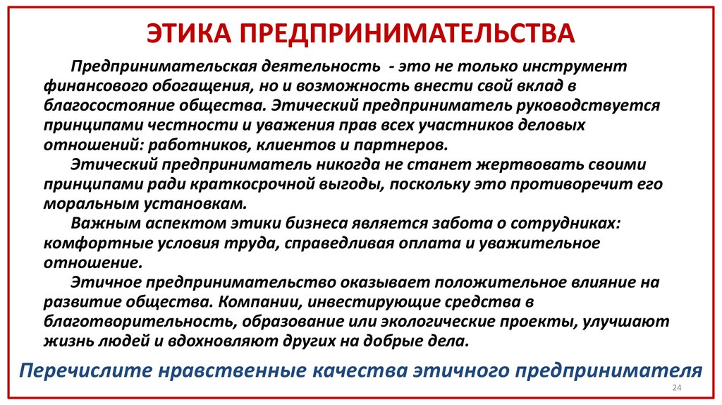 ЭТИКА ПРЕДПРИНИМАТЕЛЬСТВАПредпринимательская деятельность - это не только инструмент