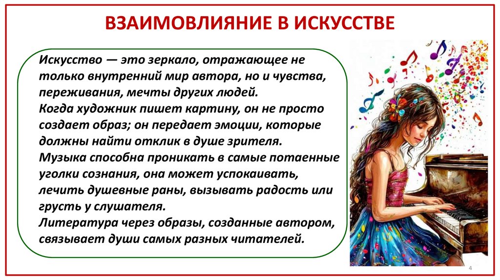 ВЗАИМОВЛИЯНИЕ В ИСКУССТВЕИскусство — это зеркало, отражающее не