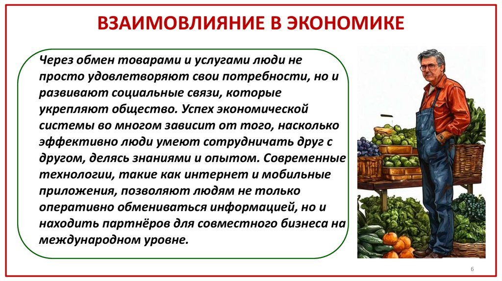 ВЗАИМОВЛИЯНИЕ В ЭКОНОМИКЕЧерез обмен товарами и услугами люди не