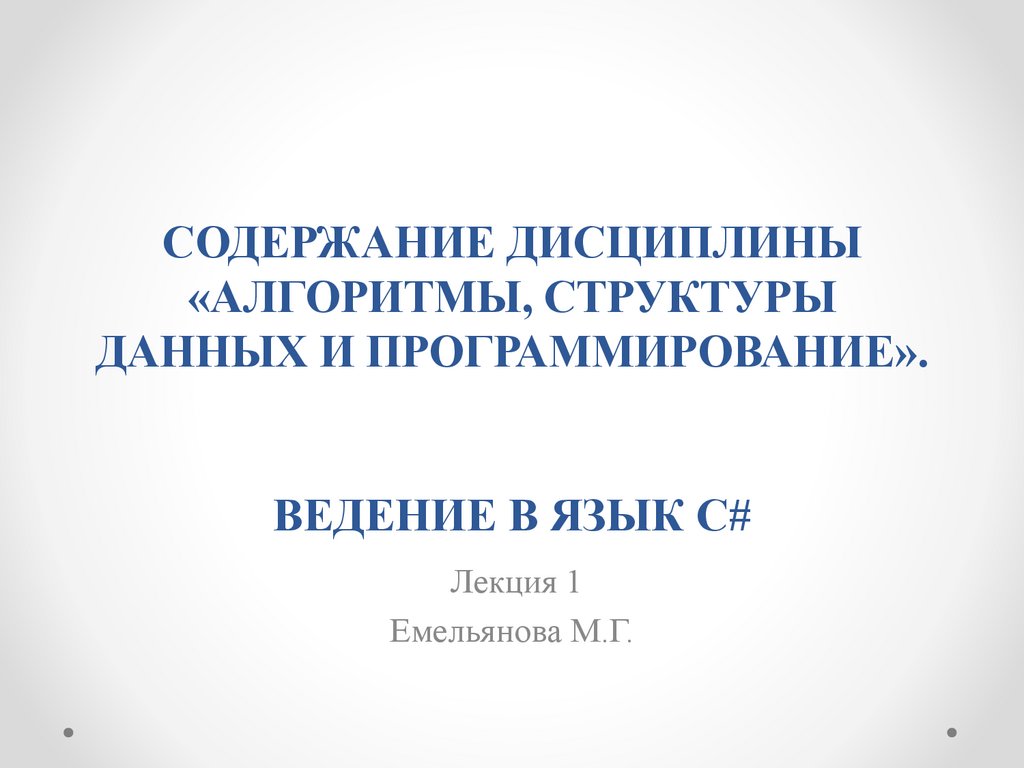 Содержание дисциплины «алгоритмы, структуры данных и программирование». Ведение в язык С# лекция 1