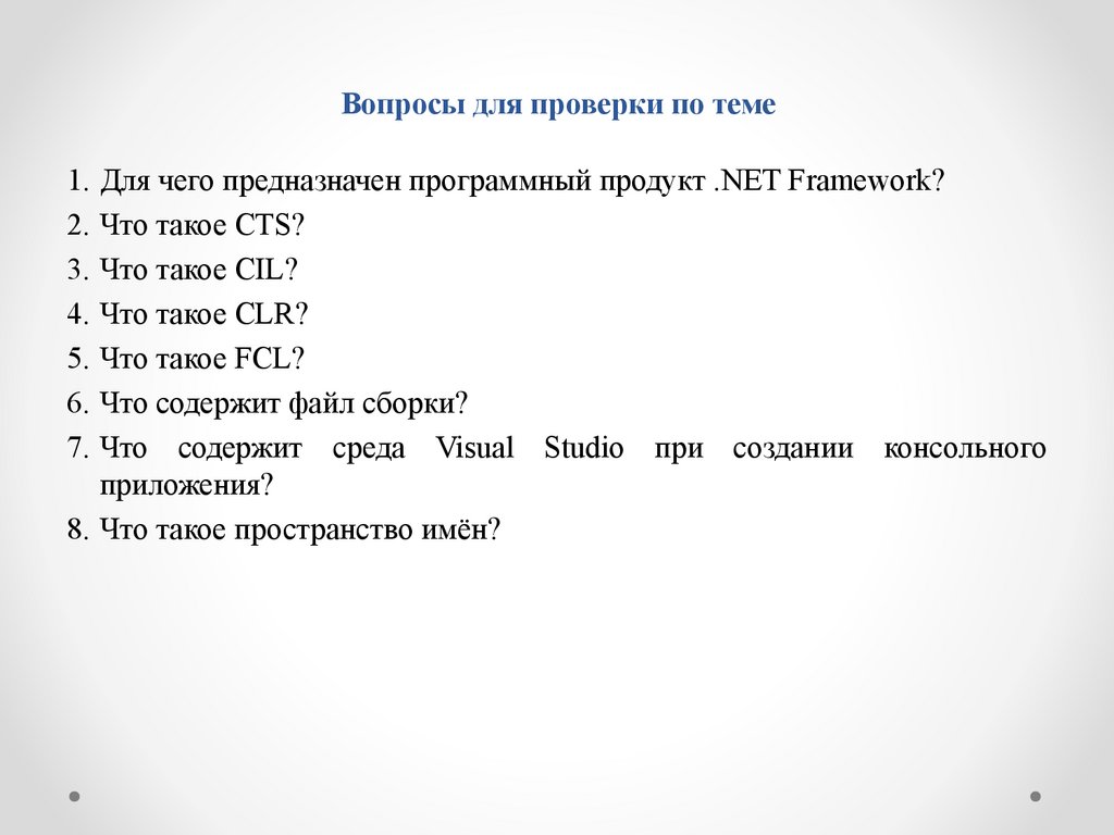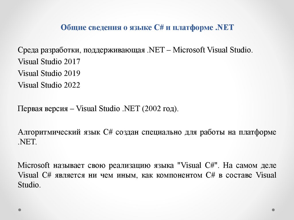 Общие сведения о языке C# и платформе .NETСреда разработки, поддерживающая .NET – Microsoft Visual Studio.