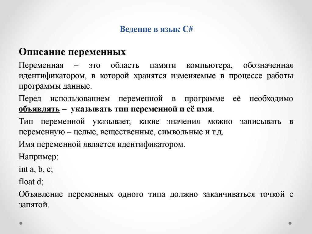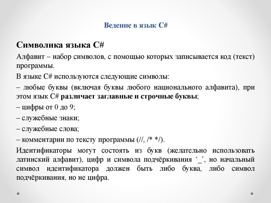 ВЕДЕНИЕ В ЯЗЫК C#