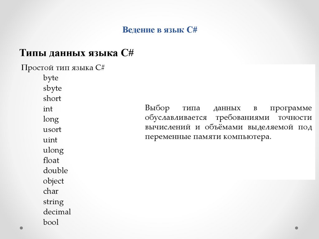 Введение в язык C#.