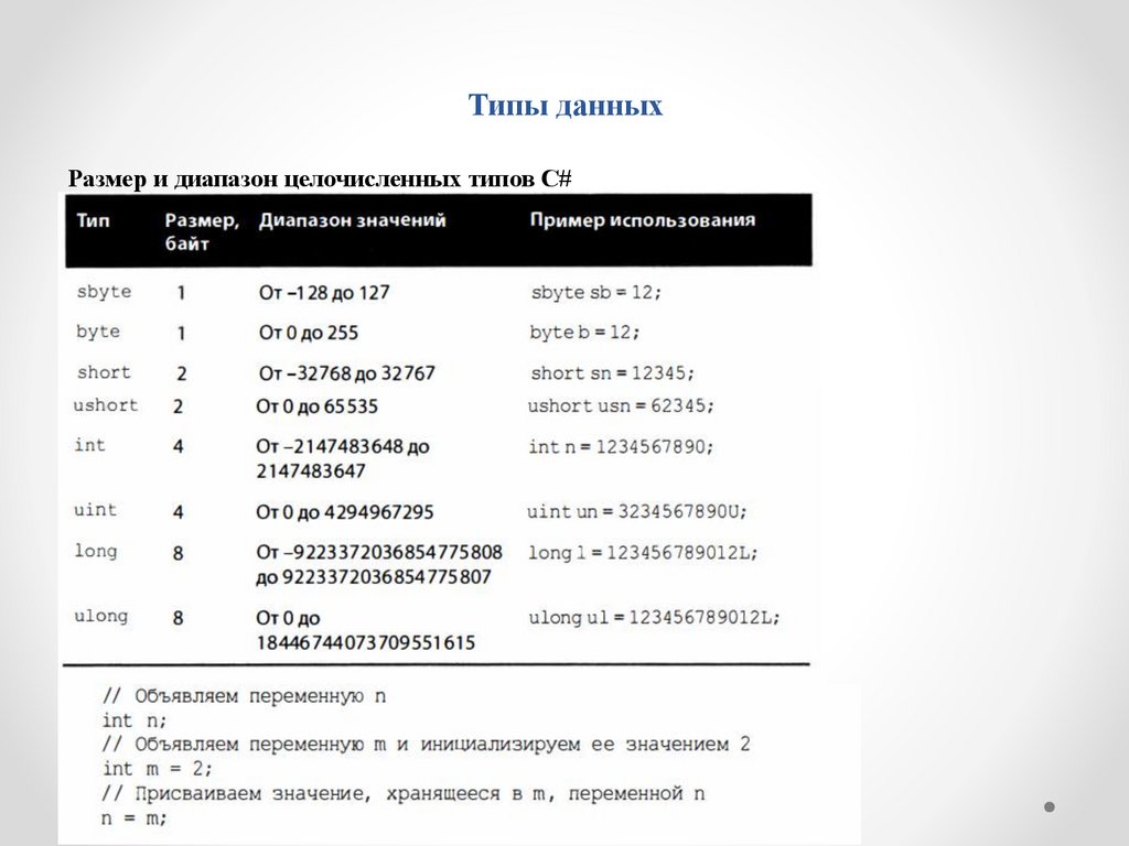 Типы данныхРазмер и диапазон целочисленных типов C#