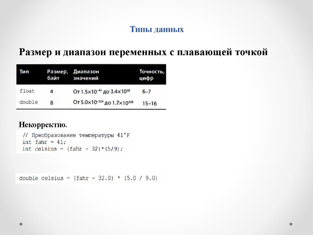 Типы данныхРазмер и диапазон переменных с плавающей точкой