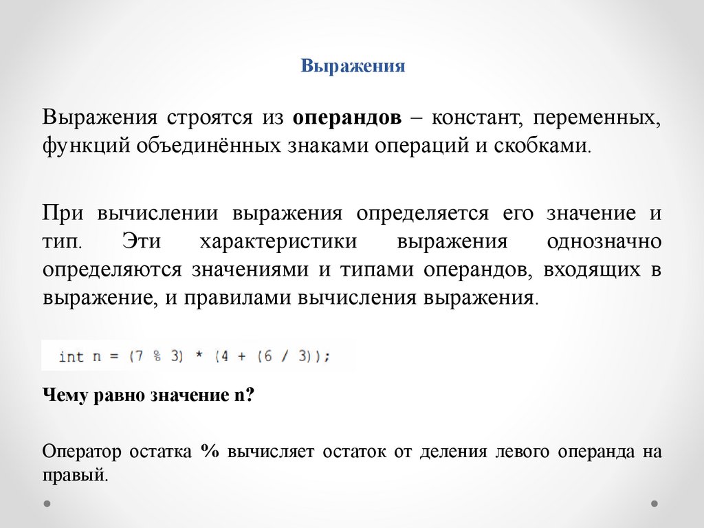 ВыраженияВыражения строятся из операндов – констант, переменных,